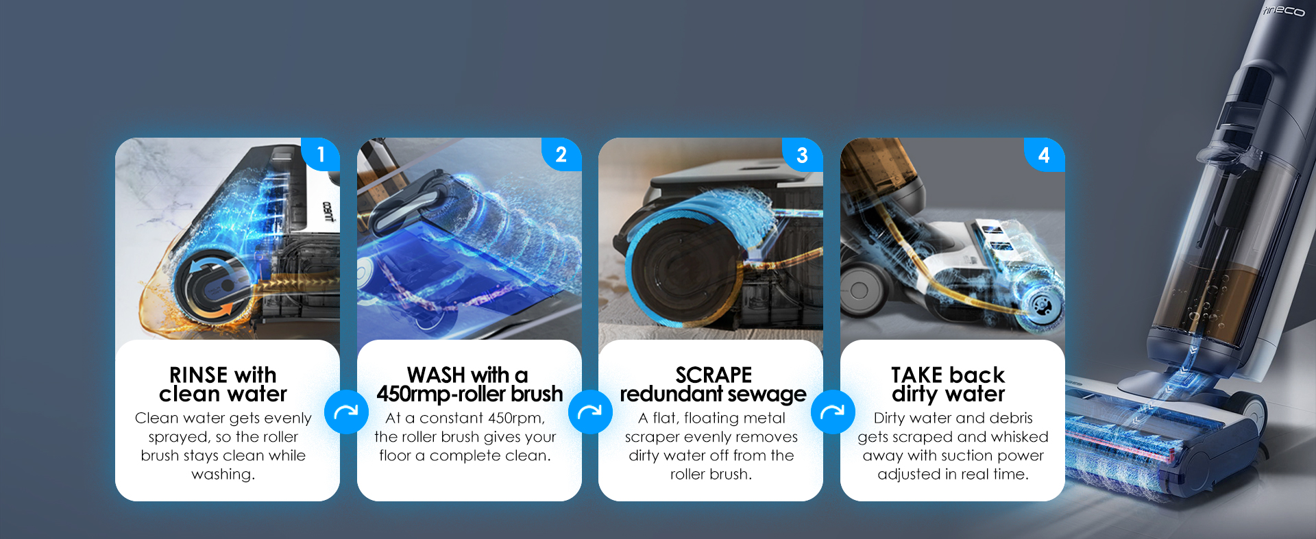 Better than a traditional mop, it always cleans with fresh water, leaving your floors completely dry and streak-free, so you don't have to wait for the floor to dry!